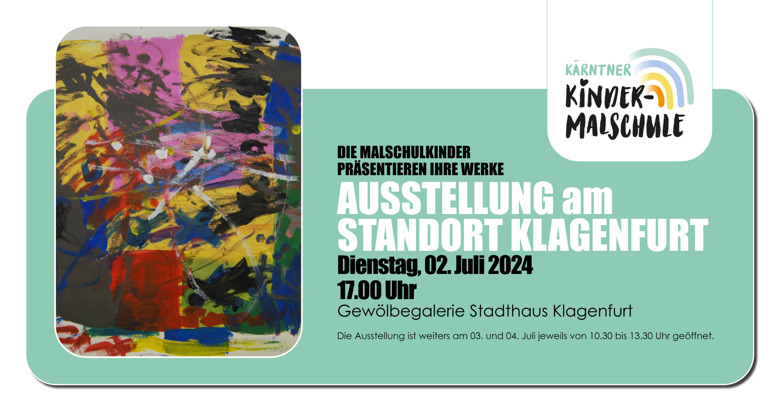 Die Termine aller Standorte finden Sie unter: https://kaerntnerkindermalschule.at/ausstellungen-2024/