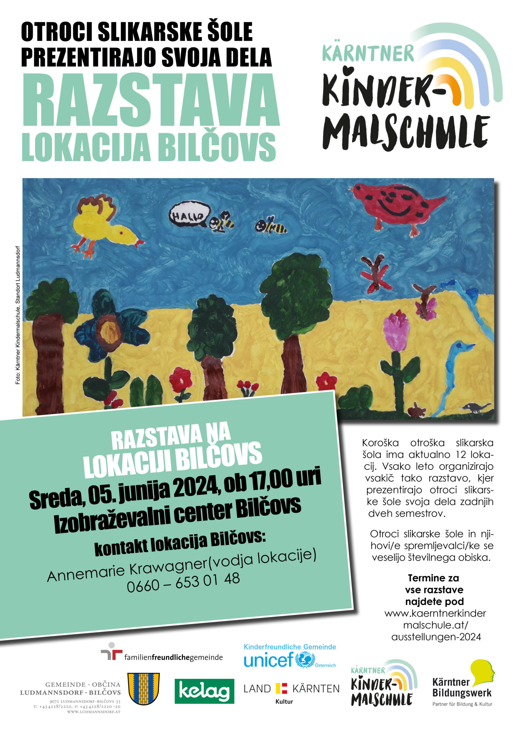 Die Termine aller Standorte finden Sie unter: https://kaerntnerkindermalschule.at/ausstellungen-2024/