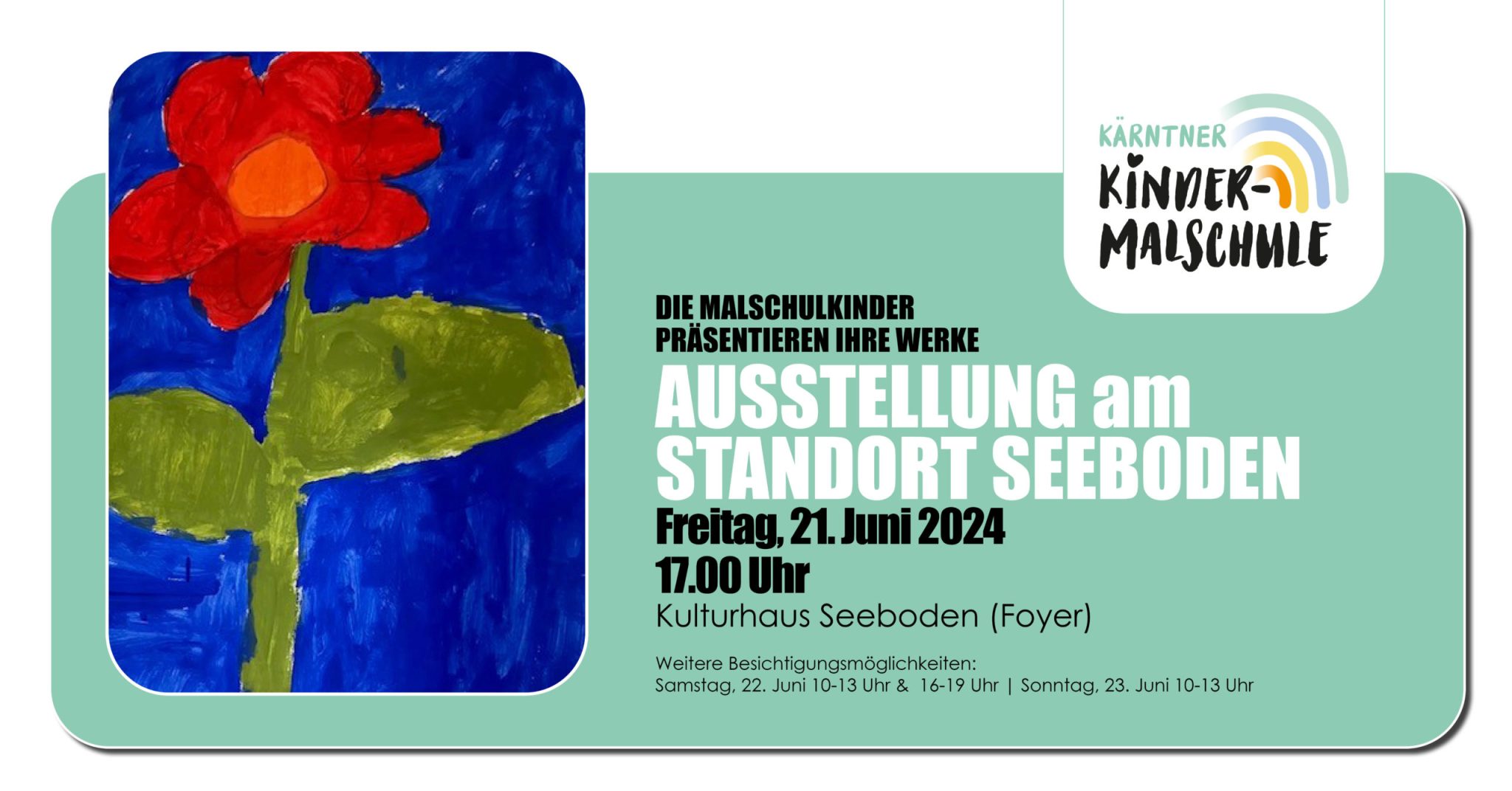 Die Termine aller Standorte finden Sie unter: https://kaerntnerkindermalschule.at/ausstellungen-2024/